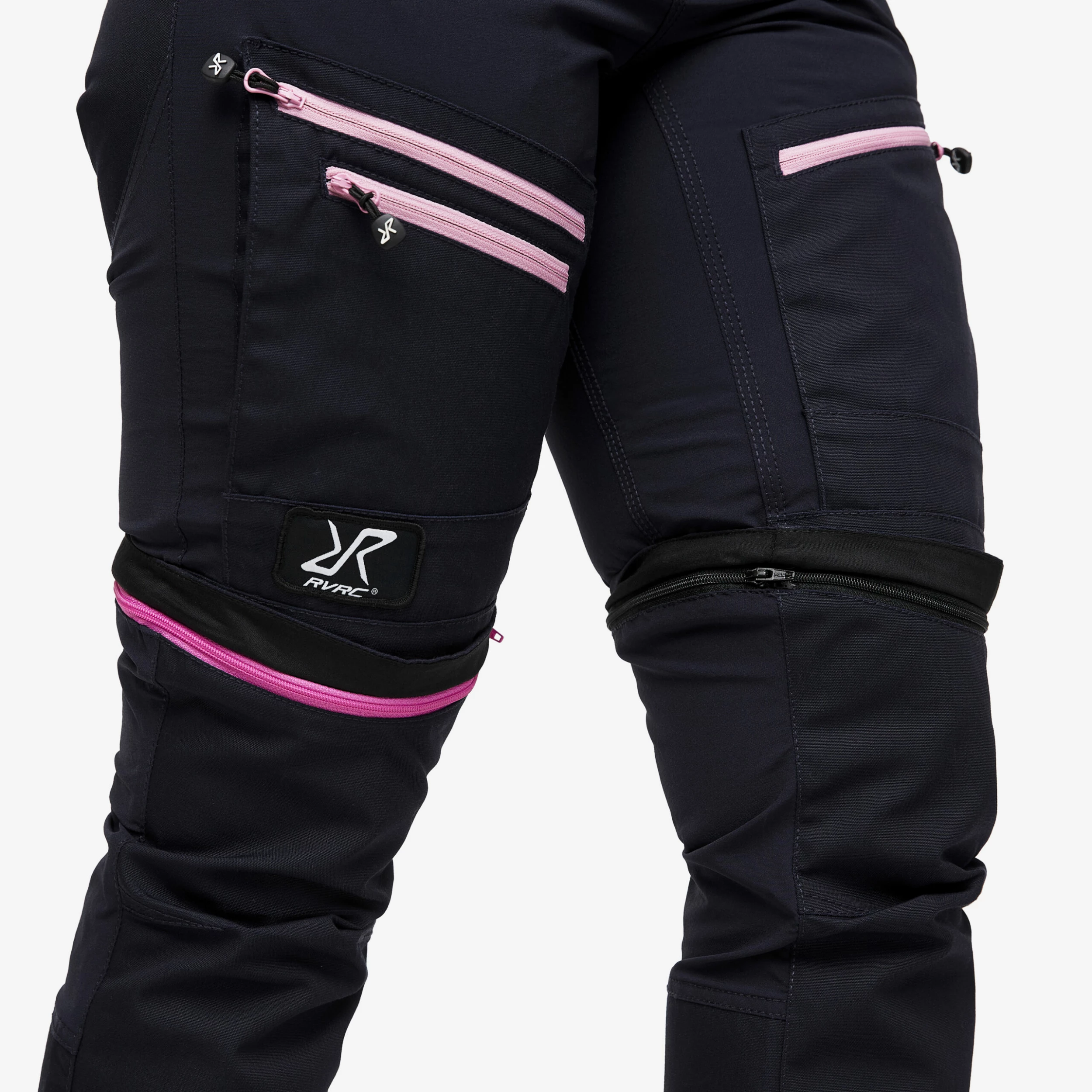 - 2 bellowed thigh pockets with zips